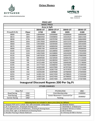 Divyansh Orion Homes gives you the best way of luxury and a thrilling life of 3/4BHK luxurious apartments in the most tranquil area of Delhi NCR, home to the greatest residential ventures under rapid development on NH24, Ghaziabad. It would be the top-ranked real estate company around the globe with a remarkable global reach. It has been elevating a lot of real estate developments in India. While residential structures are being developed around the plot's corners, various elite social infra are being built amidst seamlessly connected pieces of land. These luxurious apartments are boutique residences with enormous floor areas ranging from 1730 to 2875 square feet, unlike typical apartments found in a typical kind of residential building. To ensure maximum open space for the residents’ activities, the project has created the futuristic vision of Divyansh Orion Homes. Such includes several extraordinary high-tech facilities, such as a water fountain at the main gate, beautifully designed lush green gardens, a park, a luxurious swimming pool with laminated toddlers, etc.
